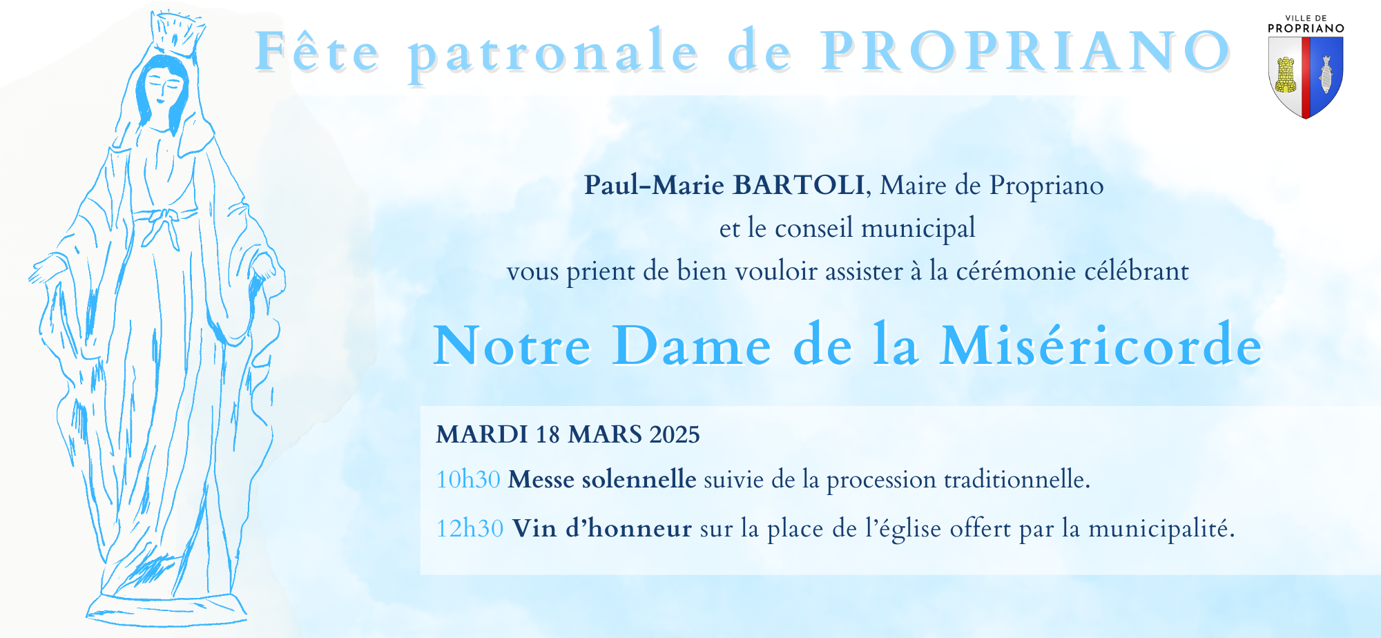 Propriano renoue avec la tradition et invite la population à venir célébrer "Notre Dame de la Miséricorde", mardi 18 mars, autour de moments de partage et de convivialité.